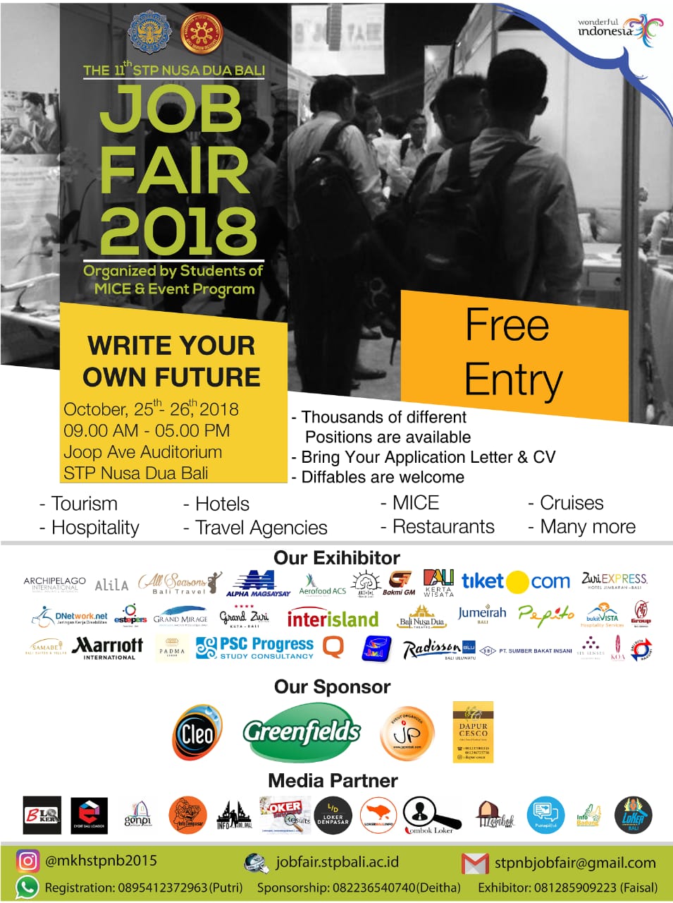 Progress Study Consultancy (PSC) akan hadir di kota Bali dalam acara Job Fair yang diadakan oleh Sekolah Tinggi Pariwisata STP Bali , 25-26 Oktober 2018 pukul 09:00 - 17:00 di Joop Ave Auditorium STP Nusa Dua Bali.